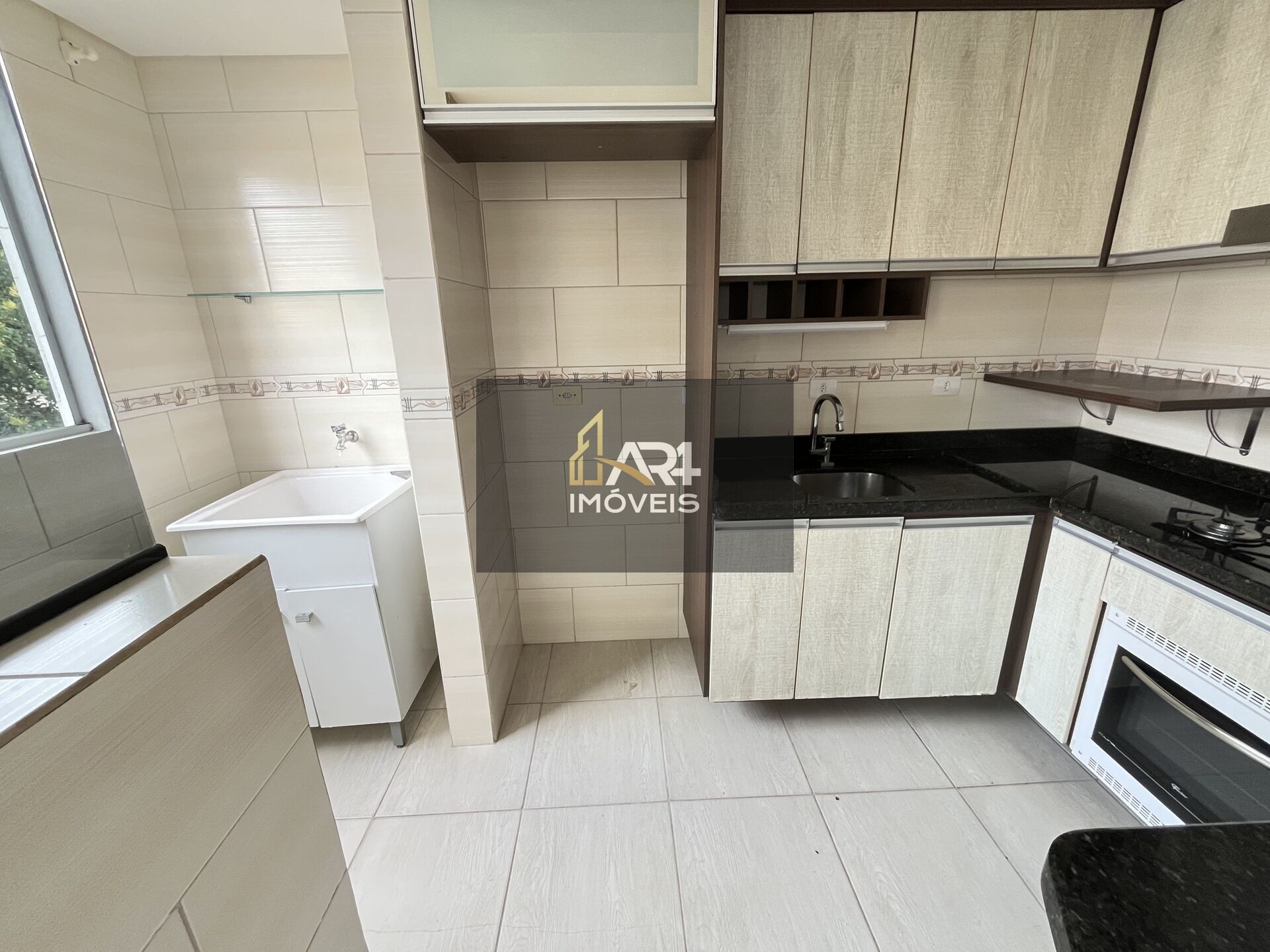 Lavanderia com armário e tanque;