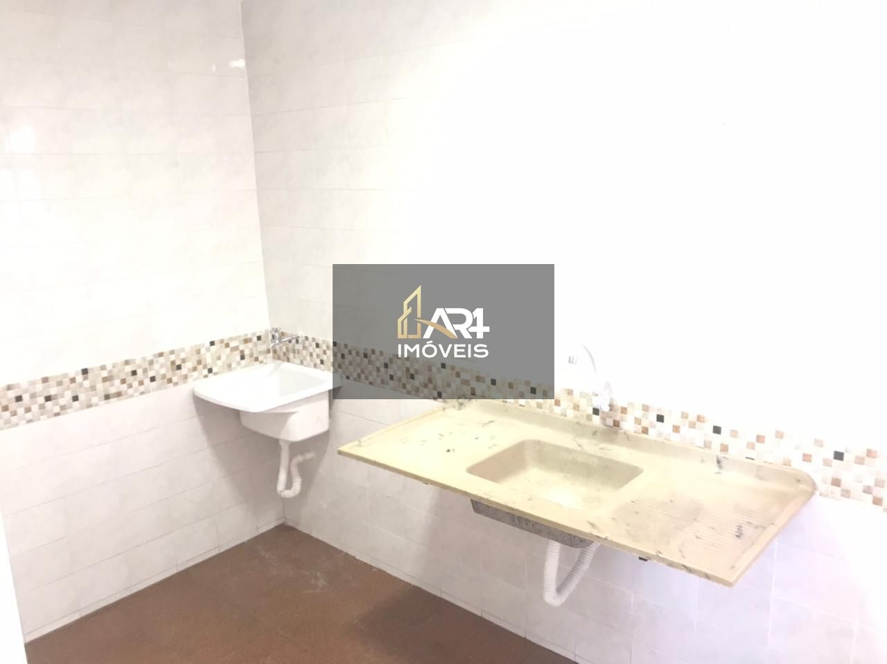 Cozinha com pia e tanque de lavar roupas na área de serviço;