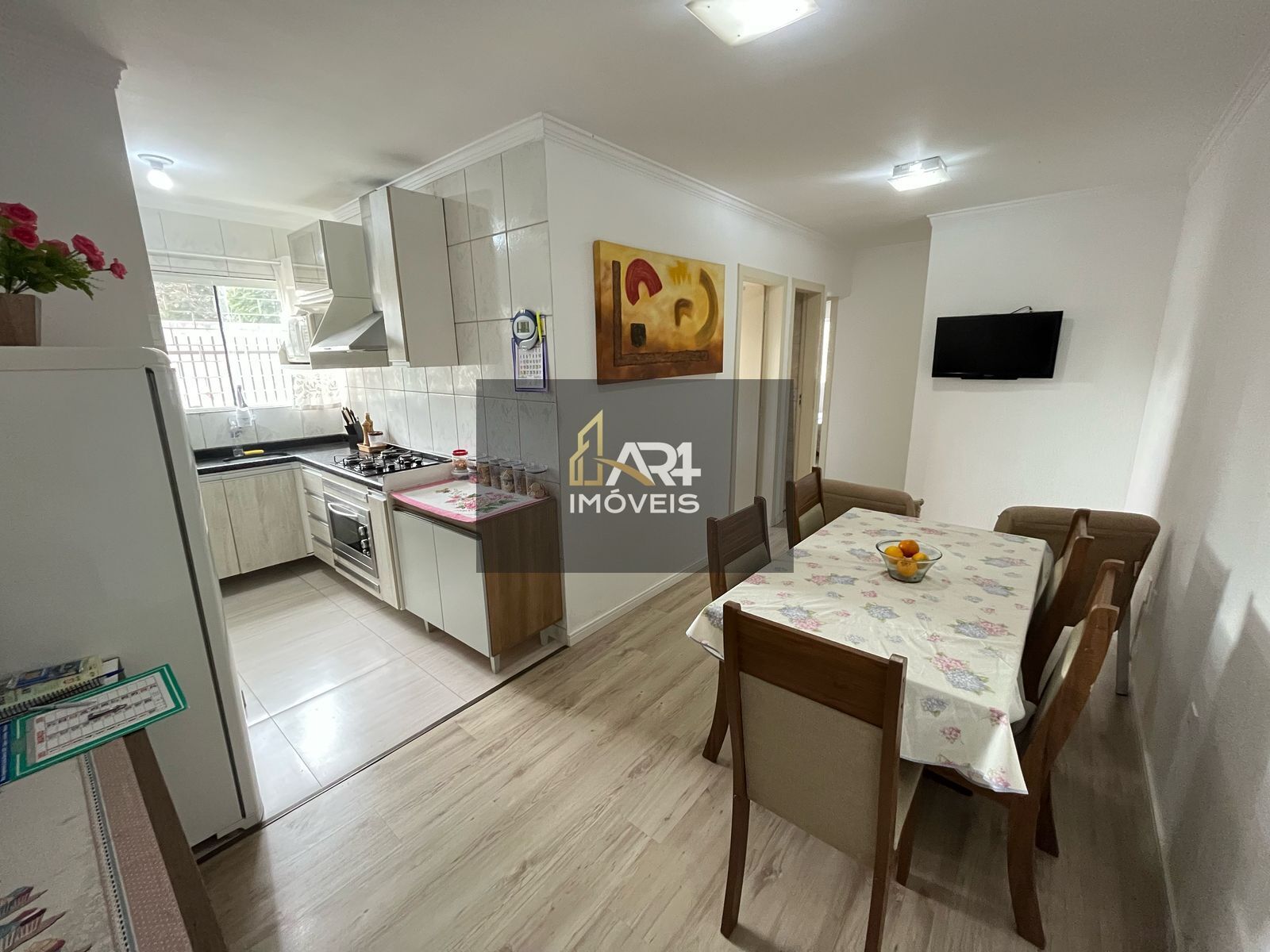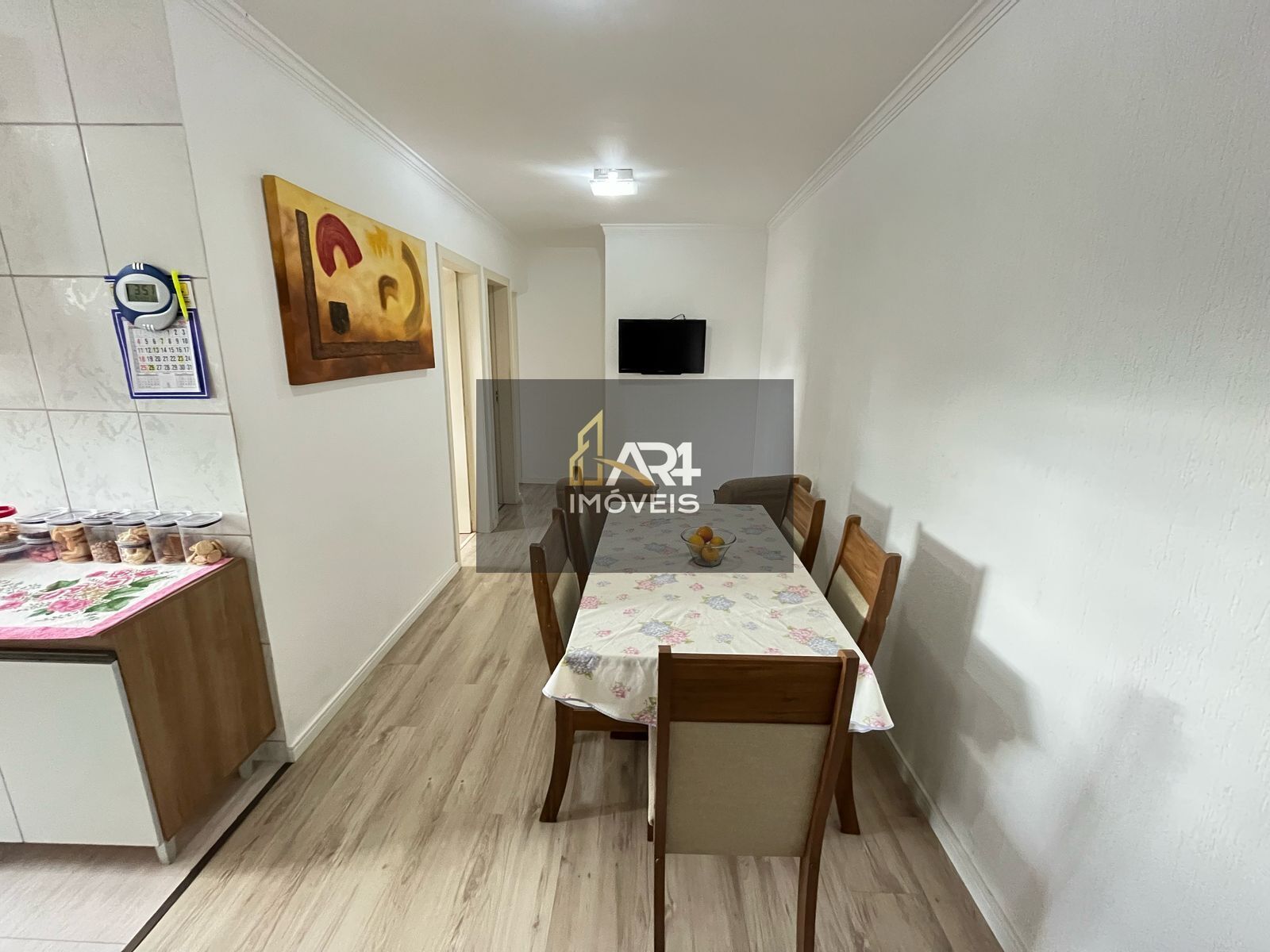 Com 3 dormitórios sendo 2 com móveis planejados, cozinha toda planejada com armários aéreos, pia e bancada em granito, área de serviço conjugada, 1 banheiro com pia e armário, sala de estar e jantar com piso laminado de madeira.